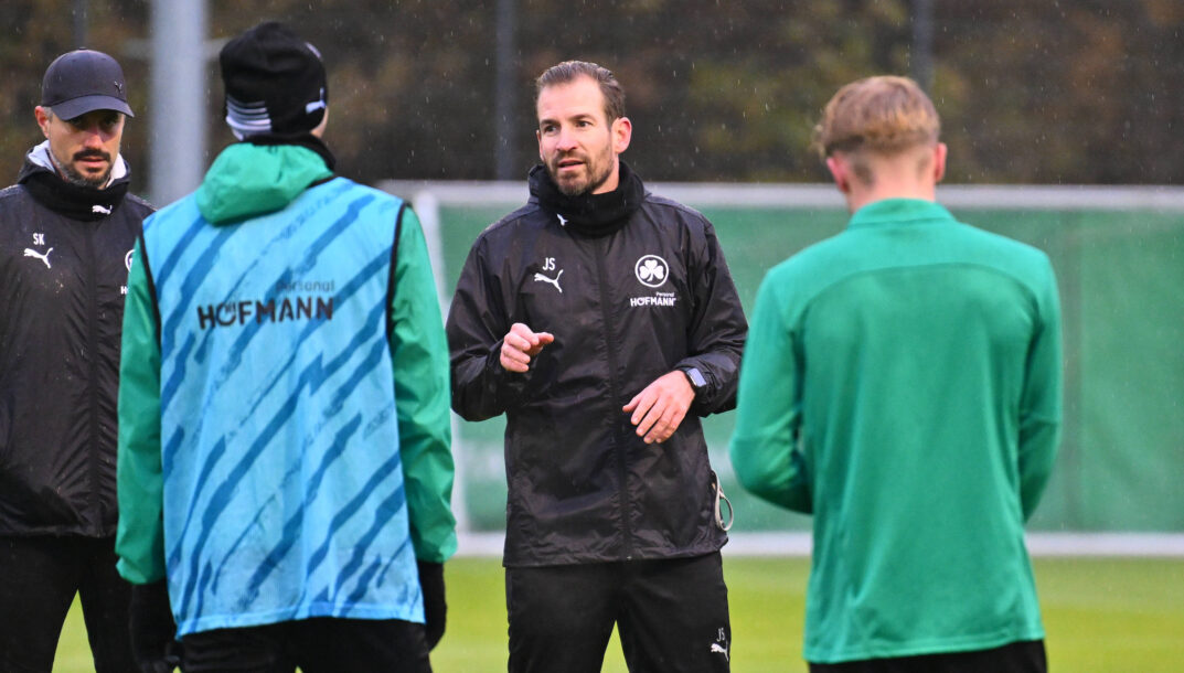 Bei strömenden Regen leitete Jan Siewert am Mittwochnachmittag seine erste Trainingseinheit bei der SpVgg Greuther Fürth und jagte seine Spieler gleich für 70 Minuten über den Platz. "Es war ein intensiver Tag, aber so muss es ja auch sein. Ich bin super hier in Fürth empfangen worden. Dann macht es umso mehr Spaß am ersten Arbeitstag loslegen zu können", meinte der neue Coach hinterher und sprach von einem engen Austausch, den er zukünftig mit seinen Spielern werde pflegen wollen: "Mir ist es wichtig, dass ich in die Jungs reinhöre. Wenn jemand mit einem inneren Frieden auf den Platz gehen kann, ist es einfacher, als wenn er Fragezeichen im Kopf hat."