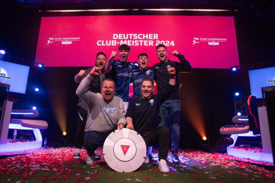 Auf dem grünen Rasen hat der SC Paderborn nach 26 Spieltagen weiterhin Chancen auf den Bundesligaaufstieg, auf dem virtuellen Spielfeld sind die Ostwestfalen aber bereits der neue Deutsche Meister. So setzte sich das Team um die Spieler Jamie „Chaser“ Bartel und Jonas „Jonny“ Wirth sowie Trainer Daniel „Coach_Pommes“ Elit am Sonntagabend im Finale um die Virtual Bundesliga in der Kölner Strassenkicker Base nach drei Einzelspielen gegen den bisherigen Meister RB Leipzig durch.